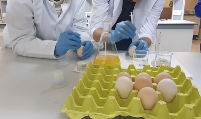 MEYVE KABUĞU ÖZÜTLERİYLE DENEY 10’uncu sınıf öğrencisi Melisa Boz ise yaptıkları çalışmanın ikinci aşamasında kullandıkları bitki özütlerinin angiogenez üzerine etkisini araştırıp projelerini geliştirdiklerini anlattı. Boz, “angiogenez yeni kan damarlarının oluşumu demektir ve kanserin büyümesi ve yayılmasında önemlidir. Çünkü yeni kan damarlarının oluşumu kanser hücrelerine besin maddelerinin ulaşmasını sağlar böylece, kanser hücreleri büyüyerek, yanındaki dokulara ve vücudun diğer bölümlerine yayılmaya başlar. Turunçgil kabukları, karaturp ve nar kabukları ekstrelerinin angiogenez üzerine etkisini görmek için deneyimizde piliç yumurtaları kullanılmıştır. Elde ettiğimiz ekstrelerden 1ml alarak insülin iğnesi ile 48 saatlik döllenmiş piliç yumurtalarına enjekte ettik, kontrol grubunda ise ekstre yerine 1ml saf su kullandık. Enjeksiyon yaptığımız yumurtaları 96 saat kuluçka makinesinde beklettikten sonra dikkatlice kırıp damarlanma boyutlarını inceledik. 96 saat sonra yumurtaları açtığımızda gözlemledik ki saf su enjekte ettiğimiz yumurtada kan damarları gerektiği kadar oluşmuştu. Fakat, özütleri enjekte ettiğimiz yumurtalarda kan damarlarının oluşumunun azaldığını gözlemledik. Yani, kanserli hücrelerin yayılımını ve büyümesini engellemiş olduk. Projemizi geliştirmeyi hedefliyoruz. Kullandığımız özütleri, kanser tedavisinde kemoterapi yerine kullanabileceğimiz doğal bir aşı veya ilaç haline getirmek istiyoruz. Böylece hem kemoterapinin zararlı etkilerini ortadan kaldırmış oluruz hem de daha doğal bir şekilde kansere çözüm bulmuş oluruz” diye konuştu.