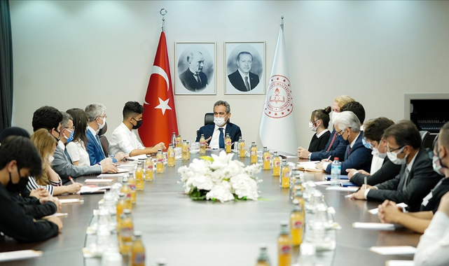 Milli Eğitim Bakanı Mahmut Özer, lise öğrencileriyle bir araya gelerek öneri ve isteklerini dinledi.Milli Eğitim Bakanlığından yapılan açıklamaya göre, Özer, Ankara'nın çeşitli ilçelerinden gelen Anadolu lisesi, fen lisesi, imam hatip lisesi, güzel sanatlar lisesi ile mesleki ve teknik Anadolu lisesi öğrencileriyle Bakanlık'ta görüştü.Özer, şu anda ana odaklarının okulların yüz yüze eğitime devam etmesi olduğunu belirterek, bu süreçte dördüncü haftayı başarılı bir şekilde tamamlamak üzere olduklarını, sürecin planlandığı gibi ilerlediğini bildirdi.Yüz yüze eğitimin yeniden başlaması konusunda hiçbir sıkıntı yaşanmadığını aktaran Özer, salgın şartlarında alınması gereken önlemlere uymanın öneminin altını çizdi.