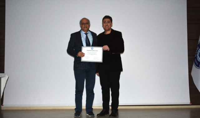 Etkinlik sonunda Prof. Dr. Cihan Özgün tarafından Prof. Dr. Nuri Karakaş’a katılımdan dolayı “Teşekkür Belgesi” verildi.