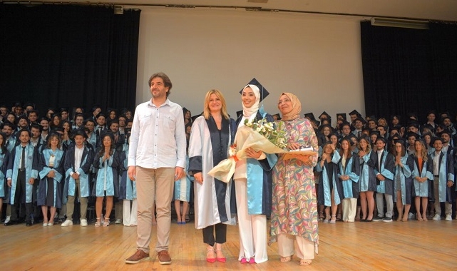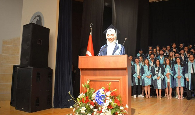 Mezun olmaktan dolayı duyduğu mutluluğu ve gururu dile getiren Fakülte dönem birincisi Sevdenur Yılmaz, “Türkiye’nin en köklü ve sağlık alanında en başarılı üniversitelerinden biri olan, ayrıca bizler gibi binlerce sağlık çalışanı yetiştiren Ege Üniversitesinden mezun olmanın mutluluğunu yaşıyorum. Bugün ben ve arkadaşlarım 5 yıllık uzun ve zorlu bir eğitim sürecini tamamladık. Beş yıllık süreçte bizlerden hiçbir zaman desteklerini esirgemeyen başta sayın hocalarımız olmak üzere, asistanlarımıza, tüm personelimize ve son olarak da bizleri yetiştiren ailelerimize teşekkür ediyorum” dedi.
