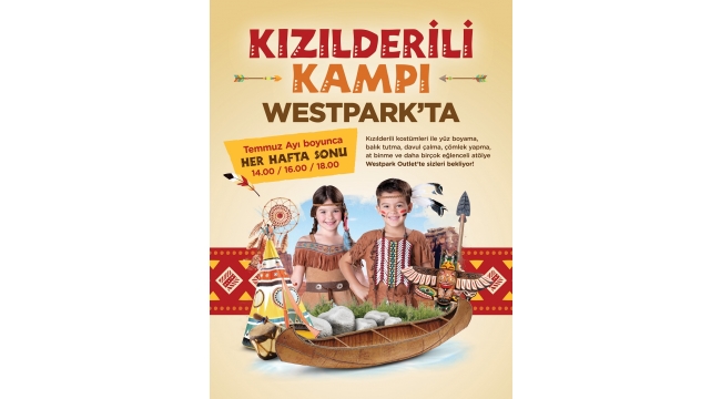 Kış döneminde yapılan ve çocuklar tarafından yoğun ilgi gören Kızılderili Kampı Temmuz ayı boyunca tekrar Westpark’ ta olacak! AVM içinde kurulacak tematik dev etkinlik alanında her hafta sonu yöresel kıyafetleri giyen minikler Kızılderili Kampı etkinliğinde gönüllerince eğlenecek. Çocuklar Kızılderili köyünde Kızılderililerin yaşayışlarını eğlenceli atölyeler eşliğinde öğrenecekler. Tematik alan içinde davul çalma, balık tutma, yüz boyama, at binme ve çömlek yapma ve daha birçok eğlenceli aktivite yapılacak. Temmuz ayı boyunca her hafta sonu tekrarlanacak etkinlikler 14:00-18:00 saatleri arasında olacak.