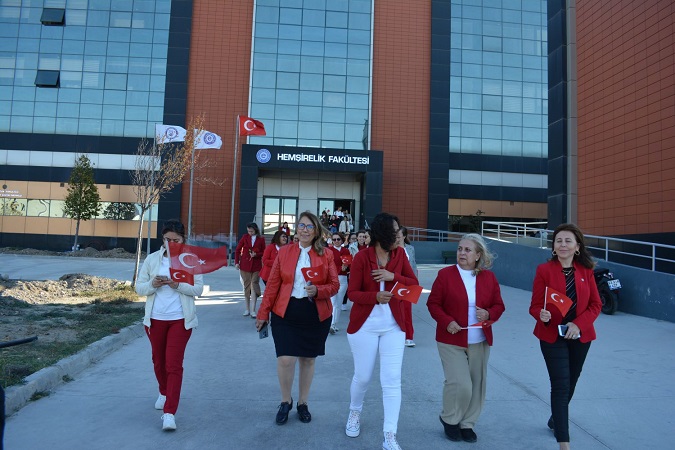 Ege Üniversitesi Hemşirelik Fakültesi tarafından “Cumhuriyet Yürüyüşü -Kırmızı Beyaz Yürüyüş” etkinliği düzenlendi. Yürüyüş, Hemşirelik Fakültesi önünde başlayarak EÜ Tıp Fakültesi Hastanesi’nin önündeki Atatürk büstünde sona erdi.