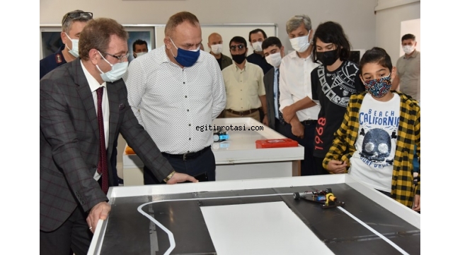Robotik Kodlama Atölyesinde öğrencilerin robotlar ile gösterisi sırasında 7. sınıf öğrencisi Özgür Deniz Yılmaz isimli öğrencinin sunumu katılımcılar tarafından büyük bir ilgi ile izlendi.