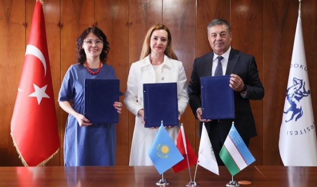 Türkiye’nin köklü yükseköğretim kurumlarından olan Dokuz Eylül Üniversitesi (DEÜ), uluslararası düzeydeki akademik iş birliklerini sürdürüyor. DEÜ bu kapsamda, Kazakistan’dan Hoca Ahmet Yesevi Uluslararası Türk-Kazak Üniversitesi ve Özbekistan Urgenç Tıp Akademisi ile aynı gün iki ayrı iş birliği protokolü imzaladı. DEÜ’nün Alsancak’taki Rektörlük binasında gerçekleştirilen prokotol imza törenine, DEÜ Rektörü Prof. Dr. Nükhet Hotar, Hoca Ahmet Yesevi Uluslararası Türk-Kazak Üniversitesi Rektörü Dr. Janar Temirbekova, Özbekistan Urgenç Tıp Akademisi Direktörü Prof. Dr. Ruzibaev Rashid Yusupovich ve Urgenç Tıp Akademisi'nin temsilcileri katıldılar.