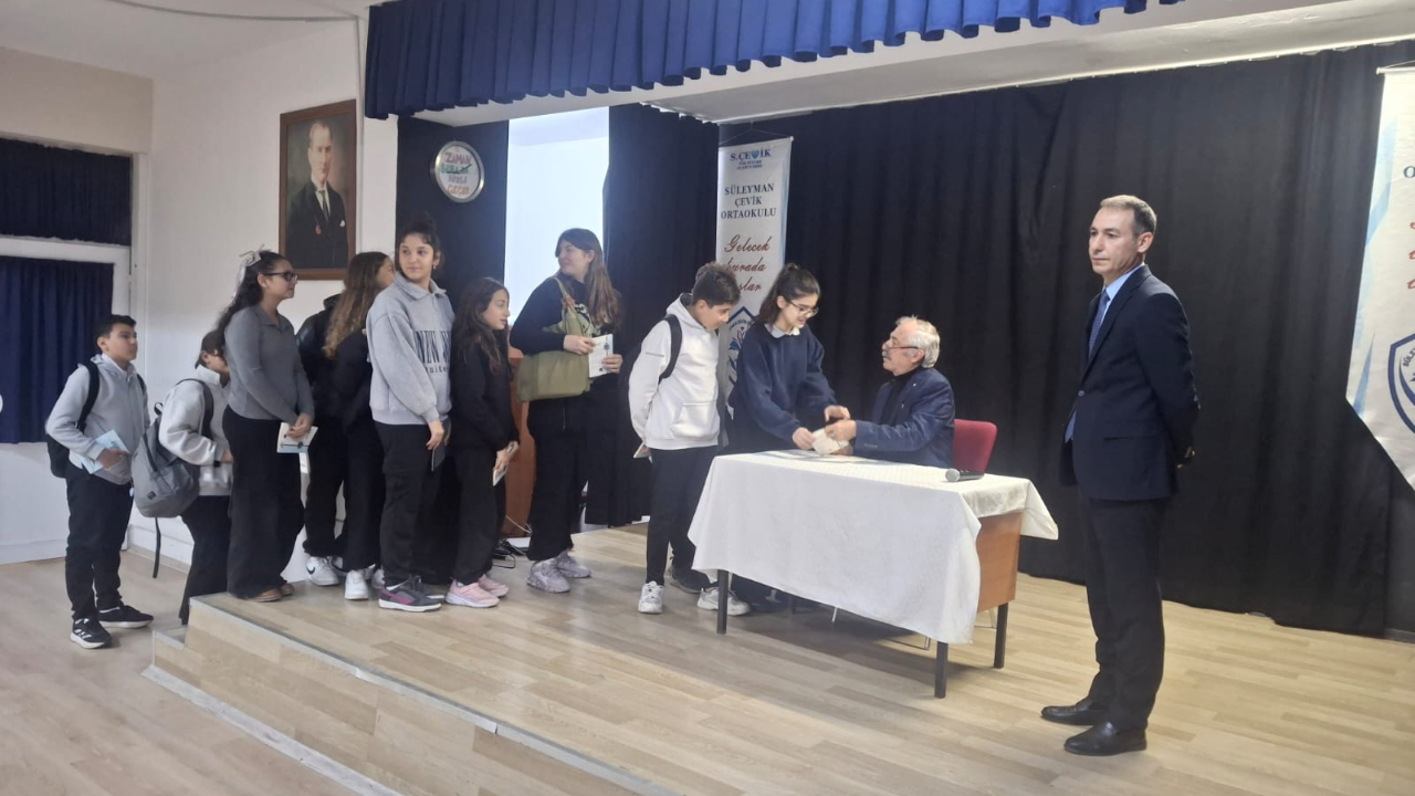 DİLİMİZİN ZENGİNLİKLERİ PROJESİNDE KONUŞAN YAZAR ERTEKİN:“GAZİ UMUR BEY TÜRK DİLİNİN ANADOLUDAKİ NEFESİDİR” Milli Eğitim Bakanlığı tarafından okullarda yürütülen “Dilimizin Zenginlikleri” projesi kapsamında Menderes Süleyman Çevik Ortaokulu öğrencileriyle buluşan yazar A.Levent Ertekin öğrencilere yüzyıllar boyu çok geniş bir coğrafyada Türkçenin geçerli bir dil olduğuna temas ederek örneklerle öğrencilere dilimizin güzelliklerinden örnekler verdi.İzmir Menderes ilçesi Süleyman Çevik ortaokulunda konuşan Türkiye Yazarlar Birliği İzmir Şubesi Başkanı A.Levent Ertekin,Türk dilinin bugün dünyada yaşayan en eski ve zengin dillerin başında geldiğini ifade etti.Ertekin, İzmir Fatihi Gazi Umur Bey üzerinden verdiği örneklerle öğrencilere farklı bir pencere açarak beylik döneminde Türkçenin İzmir ve çevresinde resmi dil olarak etkili olduğunu o dönemde yazılan farklı dillerdeki kitapların Türkçeye çevrilerek halkın okumasının teşvik edildiğini de kaydetti.Menderes Süleyman Çevik ortaokokulu öğrencilerine yönelik Dilimizin Zenginlikleri projesi kapsamında 100 öğrenci ile gerçekleştirilen konferansın sonunda yazar Ertekin kitaplarını imzalayarak öğrencilerle sohbet etti. Haber: Bülent Ertekin İlginizi Çekebilir