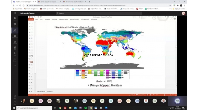 Ege Üniversitesi Çevre Sorunları Uygulama ve Araştırma Merkezi (ÇEVMER) tarafından düzenlenen “Perşembe Seminerleri” devam ediyor. Çevrimiçi gerçekleşen seminerler kapsamında Ege Üniversitesi Fen Bilimleri Enstitüsü Çevre Bilimleri Anabilim Dalı yüksek lisans öğrencisi Fatma Nur Derdiyok tarafından “Geleneksel Akdeniz Mimarisinde Pasif Bina Çözümleri” konulu sunum yapıldı. Seminere; ÇEVMER Müdürü Prof. Dr. Dinçer Ayaz, Fatma Nur Derdiyok’un danışmanı Ege Üniversitesi Mühendislik Fakültesi İnşaat Mühendisliği Bölümü öğretim üyesi Doç. Dr. Gülben Çalış, akademisyenler ve öğrenciler katıldı.