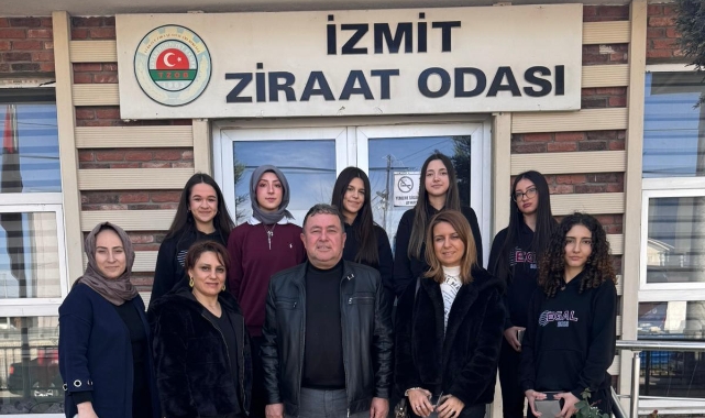 Öğrenciler proje kapsamında İzmit Ziraat Odası’nı ziyaret ederek Ziraat Odası Başkanı Yusuf Karaaslan ve Ziraat Mühendisi Zeynep Çetin ile bir araya geldi. Görüşmede iklim değişikliğinin tarıma etkileri, üretimde yaşanan zorluklar, su kaynakları ve gıda arz güvenliği gibi kritik konular ele alındı.