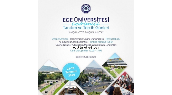 İZMİR(Ege Ajans)- Dünyayı etkisi altına alan Covid-19 salgını ile birlikte eğitim alanında pek çok etkinlik, “online” olarak gerçekleştiriliyor. Bu kapsamda Ege Üniversitesi, daha önce birebir gerçekleştirdiği ve 25 bine yakın üniversite adayını ağırladığı “Tanıtım ve Tercih Günleri” etkinliğini bu yıl alınan önlemler kapsamında çevrimiçi olarak yapacak. Etkinlik, 23-24 Temmuz tarihlerinde “egetercih.ege.edu.tr” internet sitesi üzerinden yapılacak. Adaylar, iki gün süreyle üniversite hakkında merak ettiklerini akademik ve idari çalışanlara sorarak bilgi edinecekler.