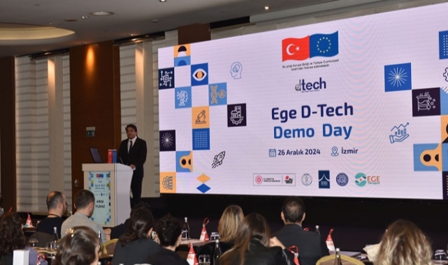 İZMİR(Ege Ajans)- Ege Üniversitesi ve Ege Genç İş İnsanları Derneği (EGİAD) iş birliğiyle, Avrupa Birliği ve Türkiye Cumhuriyeti mali desteği ile Sanayi ve Teknoloji Bakanlığı Rekabetçi Sektörler Programı altında Ege Teknopark’ın yürütücüsü olduğu Ege D-Tech Projesi kapsamında Ege D-Tech Demo Day etkinliği gerçekleştirildi.