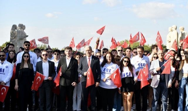 Cumhuriyetin 100. yılında Ege Üniversitesi öğrencileri, öğretim kadrosu ve çalışanları, Rektör Prof. Dr. Necdet Budak’ın öncülüğünde Türkiye Cumhuriyeti’nin kurucusu Gazi Mustafa Kemal Atatürk’ün huzuruna çıktı. Ege Üniversitesi ailesinden 350 kişinin katıldığı tören, Aslanlı Yol’daki yürüyüş ile başladı. Yürüyüşün ardından, Ege Üniversitesi Heyeti, Atatürk’ün Mozolesinin önünde saygı duruşunda bulundu. Rektör Prof. Dr. Necdet Budak, Atatürk’ün mozolesine çelenk bıraktıktan sonra heyet, Misak-ı Milli Kulesi’ne geçti. Rektör Prof. Dr. Necdet Budak, günün anlam ve önemine ilişkin, Anıtkabir Şeref Defteri’ne mesajını yazarak imzaladı. Rektör Prof. Dr. Necdet Budak, yazısında şu ifadelere yer verdi: “Büyük Önderimiz Gazi Mustafa Kemal Atatürk; Ege Üniversitesi olarak geleceğimizi emanet ettiğimiz öğrencilerimizle, gençlerimizle birlikte huzurunuzda bulunuyoruz. Cumhuriyetimizin 100. yılında tam akredite, öğrenci odaklı, araştırma üniversitesi olarak; açtığınız yolda, gösterdiğiniz hedefe durmadan emin adımlarla yürüyoruz. Göklerde dalgalanan Ay Yıldızlı Al Bayrağımızdan aldığımız güçle; çağdaş, tam bağımsız ve güçlü Türkiye için, Cumhuriyetimize sahip çıkan, milli ve manevi değerlerinin bilincinde, çalışkan ve dürüst nesiller yetiştiriyoruz. Ebedi istirahatgahınızda rahat ve huzur içinde olmanızı diliyor; en derin saygı ve şükranlarımızı sunuyoruz”