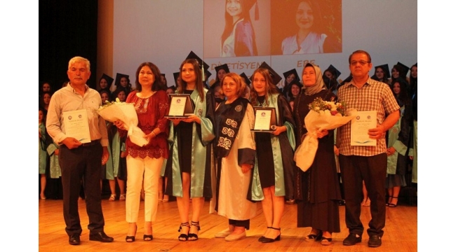 Beslenme ve Diyetetik Bölümü birincisi Simge Yalçın ve Ebelik Bölümü birincisi Burcu Kışlar’a teşekkür belgeleri ve plaketlerini Prof. Dr. Melek Gülsün Özentürk, bölüm ikincileri Ayşegül Atılgan ve Gaye Akkılınç’a teşekkür belge ve plaketlerini Doç. Dr. Reci Meseri, bölüm üçüncüleri Kübra Özdemir ve Zeynep Başboğa’ya teşekkür belge ve plaketlerini Dr. Öğretim Üyesi Özge Küçükerdönmez verdi.