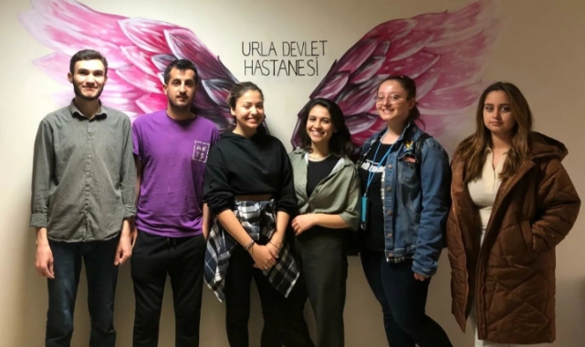 Ege Üniversitesi (EÜ) Eğitim Fakültesi Güzel Sanatlar Eğitimi Bölümü öğrencileri "Topluma Hizmet Uygulamaları" dersi kapsamında yürüttükleri Sosyal Sorumluluk Projesi kapsamında Urla Devlet Hastanesinin duvarlarını resimlediler.