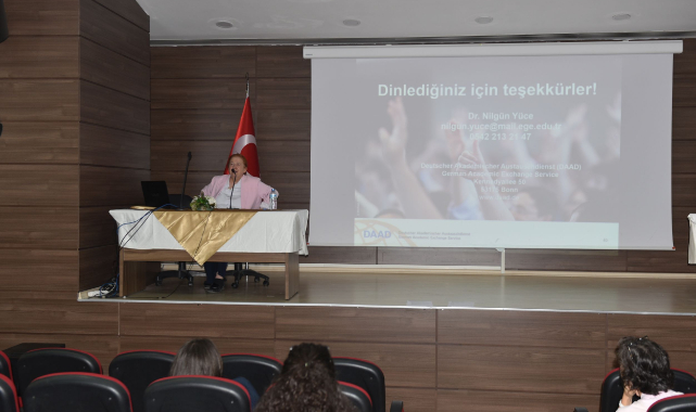 İZMİR(Ege Ajans)- Ege Üniversitesi Edebiyat Fakültesi, öğrencilerini uluslararası araştırma olanaklarıyla buluşturacak özel bir etkinliğe ev sahipliği yaptı. DAAD (Alman Akademik Değişim Servisi) Lektörü Dr. Nilgün Yüce, Almanya’da eğitim ve araştırma fırsatlarını tanıttığı sunumda, DAAD ve Humboldt Vakfı’nın genç ve deneyimli araştırmacılara sunduğu burs imkânları hakkında detaylı bilgiler verdi. Etkinlik, Edebiyat Fakültesi Nuri Bilgin Konferans Salonunda gerçekleştirildi ve katılımcılara bilimsel kariyerlerini uluslararası boyuta taşımaları için önemli ipuçları aktarıldı.