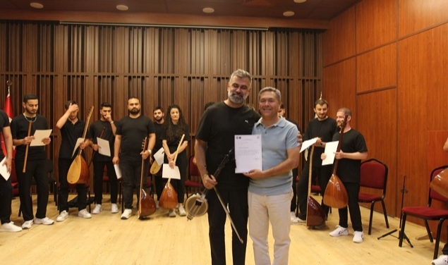 İZMİR(Ege Ajans)- Ege Üniversitesi (EÜ) Devlet Türk Musikisi Konservatuvarı (DTMK) tarafından “İleri Çalgı Repertuvarı; Yılsonu Dinletisi” düzenlendi. EÜ Konservatuvar Etkinlik Salonunda yapılan dinleti, dersin öğretim elemanları olan Türk Müziği Bölümü Öğretim Üyesi Doç. Dr. Özgür Çelik ve Ses Eğitimi Bölümü Öğr. Gör. Fikret Döğücü’nün koordinatörlüğünde gerçekleştirildi. Etkinliğe DTMK Müdürü Ali Maruf Alaskan, akademisyenler, öğrenciler ve sanatseverler katıldı.