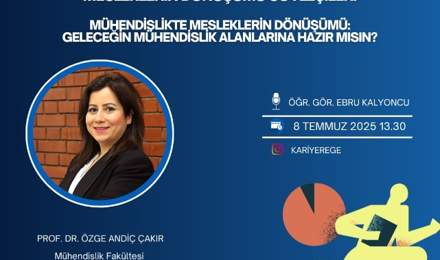 İZMİR(Ege Ajans)- Ege Üniversitesi Kariyer Planlama ve Başarı Koordinatörlüğü Öğretim Görevlisi Ebru Kalyoncu modaratörlügünde "Mesleklerin Dönüşümü ve Geleceğin Mesleklerine Hazırlık" temalı canlı yayın serisi başladı. Dijital çağın hızla değişen iş gücü dinamiklerine ışık tutmak amacıyla canlı yayınlar yapıldığını ifade eden Öğretim Görevlisi Ebru Kalyoncu, “Akademisyenler, sektör temsilcileri ve geleceğin meslek uzmanlarının katılımıyla gerçekleştirdiğimiz canlı yayınlarda; dijitalleşme, yapay zekâ, sürdürülebilirlik ve yeni nesil beceriler gibi birçok önemli konuyu ele alıyorum” diye konuştu.