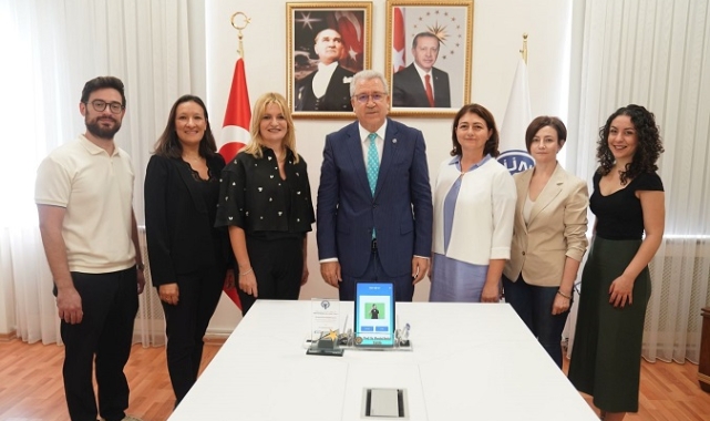 Diş Hekimliği Fakültesi Dekanı Prof. Dr. Nazan Ersin, Proje Yürütücüsü Prof. Dr. Esin Alpöz ve proje ekibi, Ege Üniversitesi Rektörü Prof. Dr. Necdet Budak’ı makamında ziyaret ederek, geliştirilen mobil uygulamayı anlattılar.