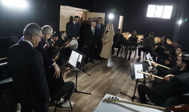 İZMİR(Ege Ajans)- Ege Üniversitesi Devlet Türk Musikisi Konservatuvarı (DTMK) bünyesinde, öğrencilerin sanat ve akademik çalışmalarını en verimli şekilde yürütebilmeleri için, modern akustik özellikler ve ileri teknik donanımlarla tasarlanan çalgı çalışma odalarının açılışı gerçekleştirildi. Açılış törenine; EÜ Rektörü Prof. Dr. Necdet Budak, Rektör Yardımcıları Prof. Dr. İlkin Şengün, Prof. Dr. Mehmet Ersan, Prof. Dr. Devrim Bozkurt, EÜ senato üyeleri, EÜ DTMK Müdürü Doç. Dr. Ali Maruf Alaskan, akademisyenler ve öğrenciler katıldı.