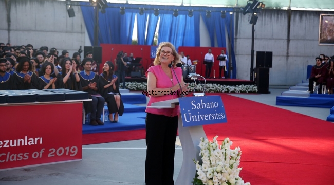 Güler Sabancı, mezunların Sabancı Üniversitesi’nden, bilimin yolundan sapmayan, Cumhuriyet değerlerine bağlı, eşitlikçi, fikri hür, vicdanı hür, irfanı hür gençler olarak hayata atıldıklarını sözlerine ekledi.