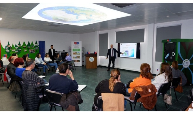 İklim değişikliğine uyum eylemlerine yönelik ekosistem tabanlı önlemlerin toplumda yaygınlaşmasını hedefleyen eğitim müfredatının hazırlanması için İzmir İl Milli Eğitim Müdürlüğüne bağlı Şehit Muhtar Mete Sertbaş Ortaokulunda öğrenim gören 6, 7 ve 8. Sınıf öğrencileri ile interaktif çalışmalar yapıldı. Prof. Dr. Doğanay Tolunay, İzmir’de görev yapan Coğrafya ve Fen Bilgisi öğretmenlerine Sıfır Karbon Noktası Eğitim Merkezi’nde “İklim Değişikliğinin Fiziksel Temeli” konulu eğitim verdi.
