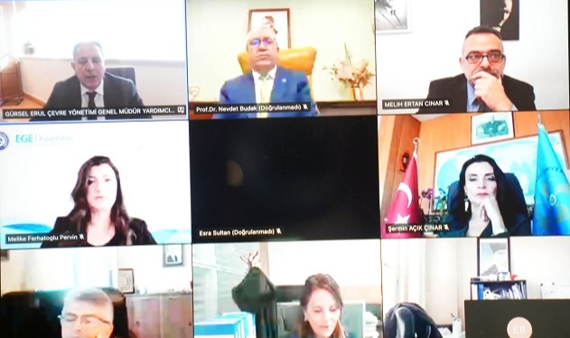 İzmir Körfezi’nin geleceğini güvence altına almayı amaçlayan “İzmir İçin Nefes” projesinin çevrimiçi değerlendirme toplantısı gerçekleştirildi. Ege Üniversitesi koordinasyonunda yürütülen toplantıya Rektör Prof. Dr. Necdet Budak, Çevre, Şehircilik ve İklim Değişikliği Bakanlığı yetkilileri ile alanında uzman akademisyenler katıldı.