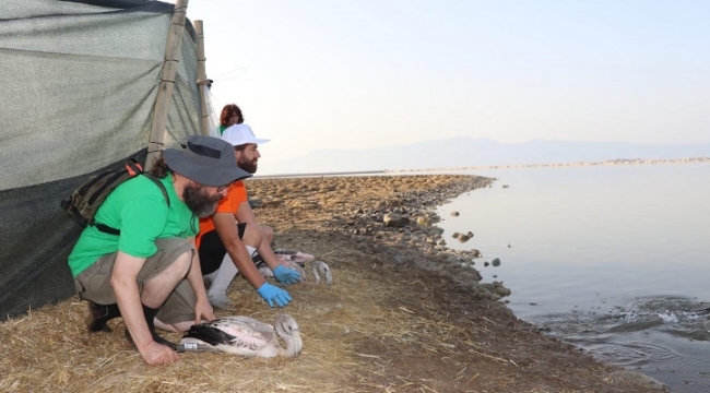 İzmir Kuş Cenneti'ndeki yapay üreme adasındaki 176 yavru flamingo, göç yolları, barındıkları alanlar ve yaşam sürelerinin takip edilmesi amacıyla yetkililer ve gönüllülerce halkalandı. Ege Üniversitesi Fen Fakültesi Biyoloji Bölümü Öğretim üyesi Doç. Dr. Ortaç Onmuş, “Flamingoların sağ bacağına PVC plastik halka, sol bacağına da metal halka takıldı. Her bir kuşun ağırlığı, gaga uzunluğu tarsus-bacak uzunluğu ölçüldü. Dış parazit örnekleri ve cloak örnekleri alındı. Genetik analizler yapılması için tüy örnekleri alındı. Halkalama çalışması için 1 günlük eğitim verildi. Eğitimden sonraki gün saat 03.00’de bir araya gelinerek halkalama yapıldı. Halkalama çalışmasına toplam 87 gönüllü katılım sağladı” dedi.