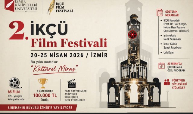İzmir Kâtip Çelebi Üniversitesi tarafından düzenlenen İKÇÜ Film Festivali başlıyor. “Kültürel Miras” temasıyla İzmir, 20–25 Nisan’da sinemanın merkezi olacak.