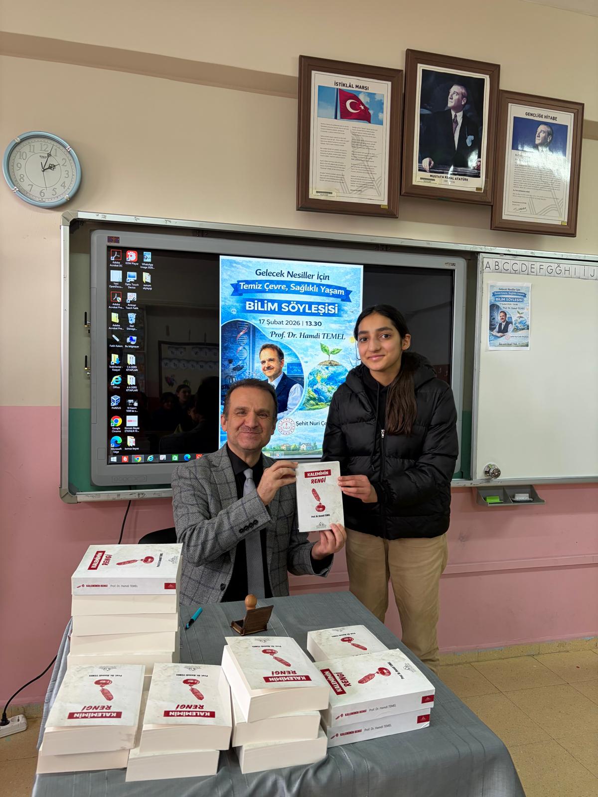 Program sonunda düzenlenen imza etkinliğinde öğrenciler, Prof. Dr. Hamdi Temel ile birebir görüşme ve kitaplarını imzalatma fırsatı buldu. Samimi ve verimli bir atmosferde tamamlanan etkinlik, Kadışehri’nde çevre bilinci yüksek, sağlıklı ve bilim odaklı bir nesil yetiştirme hedefi doğrultusunda önemli bir adım olarak değerlendirildi.