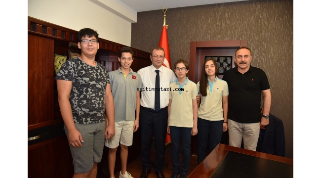 karşıyaka Kaymakamı Ali Rıza Çalışır, Metin Aşıkoğlu Ortaokulunda İlkehür Eyiol, Okyanus Kolejinden İrem Göktaş ve Hamit Cirit, Bahçeşehir Kolejinden Eren Tanrıkulu’nu makamında kabul ederek öğrencileri tebrik ederek birer altınla ödüllendirdi, ailelerini de tebrik ederek birer demet çiçek verdi.