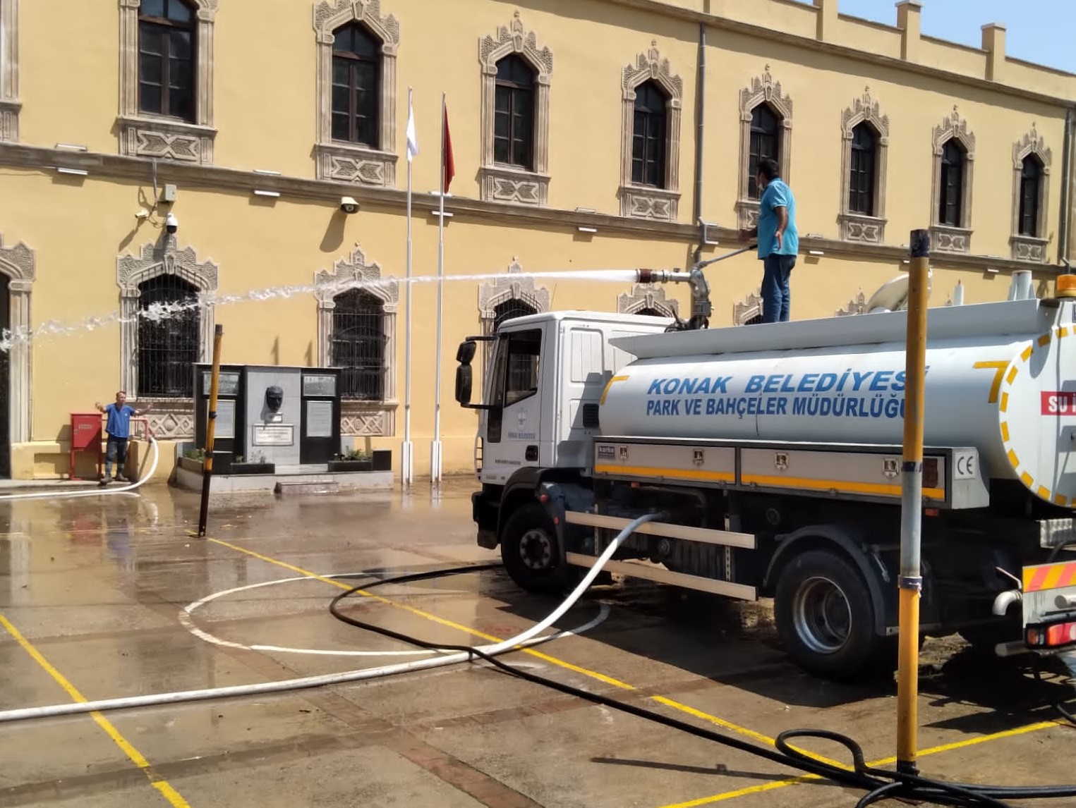 Türkiye genelinde eğitimin yüz yüze başlayacak olması nedeniyle Konak Belediyesi, ilçe sınırları içinde bulunan tüm eğitim kurumlarını dezenfekte etti. Pandemi döneminde yaygın olarak yürütülen uzaktan eğitimin yerini yüz yüze eğitime bırakacak olması nedeniyle eğitim kurumlarındaki hijyen koşulları toplumun birinci öncelikleri arasına girerken toplum sağlığını önceleyen Konak Belediyesi, okulları eğitime hazır hale getirdi. Konak Belediyesi Temizlik İşleri Müdürlüğüne bağlı dezenfeksiyon ekipleri tarafından, okul girişinden itibaren tüm koridorlar, sınıflar, kütüphane, laboratuar, tuvaletler ile idare odaları dezenfekte edilirken, okul bahçelerinde de süpürme ve tankerle yıkama dahil detaylı temizlik çalışması yapıldı.