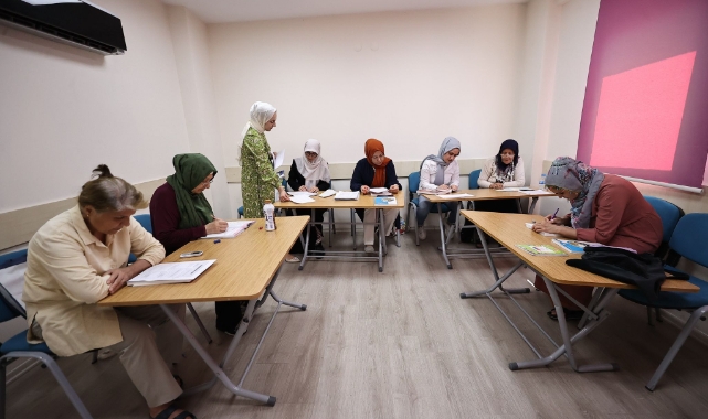 Konak Belediyesi’nin Konaklı kadınların sosyal yaşamda daha çok yer almalarını sağlayan semt merkezlerinde düzenlenen hobi, meslek ve kişisel gelişim kurslarına ilgi gün geçtikçe artıyor. Ahşap boyamadan çikolata yapımına, takı yapım tekniklerinden dikişe birbirinden farklı kursların yer aldığı semt merkezleri arasında Aziziye Semt Merkezi’nde devam eden Okuma-Yazma Kursu, azimli kursiyerleriyle dikkat çekiyor. Konak Halk Eğitim Merkezi iş birliğiyle ücretsiz olarak düzenlenen iki aşamalı kursun ilk seviyesinde alfabe ve okuma yazma öğretilirken, ikinci seviyede okuma yazmanın yanı sıra Türkçe, matematik, sosyal bilgiler ve fen bilimleri de ders programına dahil ediliyor. Bu seviyeyi başarıyla tamamlayan kursiyerler Milli Eğitim Bakanlığınca açılan sınavlara girerek ilkokul diploması alabiliyor.