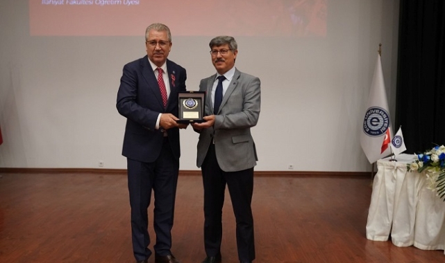 İZMİR (Ege Ajans)- Ege Üniversitesi (EÜ) tarafından “15 Temmuz Demokrasi ve Milli Birlik Günü” etkinlikleri kapsamında Fen Fakültesi Konferans Salonunda “Kutsalın İstismarına Karşı, Kutsal Değerlerimiz” konulu konferans düzenlendi. Konferansa EÜ Rektörü Prof. Dr. Necdet Budak, Dışişleri Bakanlığı İzmir Temsilcisi Büyükelçi Naciye Gökçen Kaya, Rektör Yardımcıları Prof. Dr. Mehmet Ersan, Prof. Dr. Banu Yücel, akademisyenler, öğrenciler ve idari çalışanlar katıldı. Konferansta konuşmacı olarak Dokuz Eylül Üniversitesi İlahiyat Fakültesi Öğretim Üyesi Prof. Dr. Himmet Konur yer aldı.