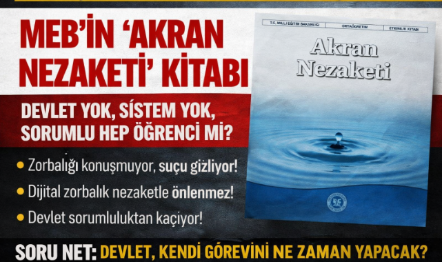 ANALİZ HABERYUNUS KARAKAYAMillî Eğitim Bakanlığı tarafından ortaöğretim öğrencileri için hazırlanan “Akran Nezaketi Etkinlik Kitabı”, ilk bakışta şiddet, zorbalık ve akran baskısına karşı masum bir eğitim hamlesi gibi sunuluyor. Ancak kitap dikkatle incelendiğinde ortaya çıkan tablo, iyi niyetli bir eğitim çalışmasından çok, sistemin kendi sorumluluğunu çocukların omzuna yıkan bir kaçış belgesi niteliğinde.