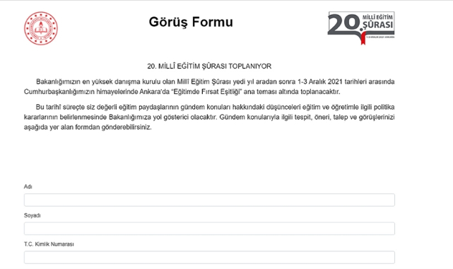 Şura konularıyla ilgili tespit, öneri, talep ve görüşler, "https://sura.meb.gov.tr/gorus/" internet adresinden MEB Talim Terbiye Kurulu Başkanlığına gönderilebilecek.