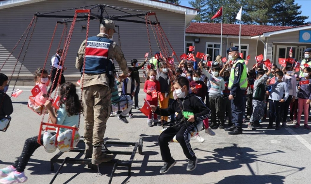 Mehmetçikten köydeki öğrencilere dönme dolap sürprizi