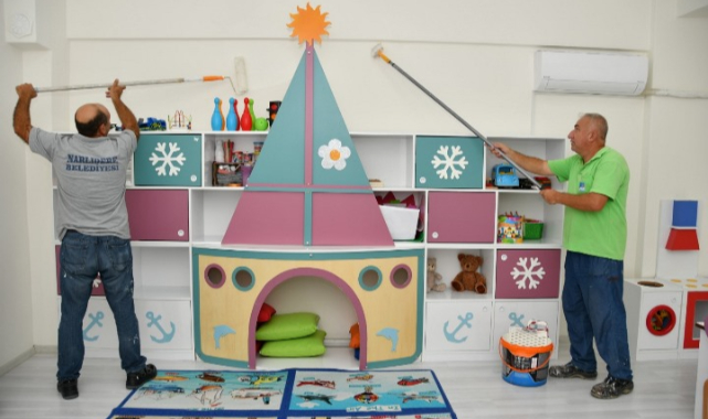Okul öncesi yatırımlarına önem veren Narlıdere Belediyesi, 2021-2022 eğitim ve öğretim dönemi için Nar Çiçeklerinin Yaşar Kemal ve Narlı şubelerinde bakım, onarım, tadilat ve detaylı temizlik işlemlerine başladı. Okullar en sağlıklı ortamlar ile yeni öğrenim sezonuna hazırlanıyor.
