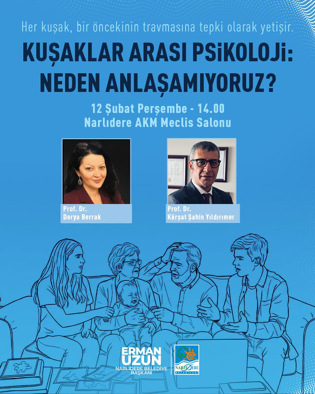 Narlıdere’de Ebeveynlik ve Kuşaklar Semineri DüzenleniyorNarlıdere Belediyesi’nin katkıları ve Narlıdere Belediye Başkanı Erman Uzun’un destekleriyle, “Kuşaklar, Psikolojik Kırılganlıklar ve Ebeveynlik Yaklaşımları” başlıklı seminer, Narlıdere’de gerçekleştirilecek.