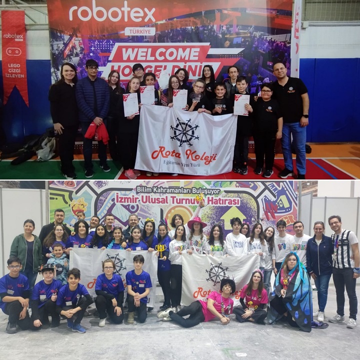 16-17 Mart tarihlerinde düzenlenen Robotex Robot Yarışması Ege Bölge Turnuvası'na aynı zamanda 2023-2024 Bilim Kahramanları Buluşuyor / FIRST® LEGO® League Challenge MASTERPIECE℠ sezonu Türkiye finallerinde katılan rota koleji takımları ödüllere doymuyor.