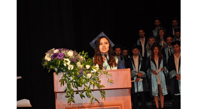 Mezunlara seslenen Dekan Prof. Dr. Asiye Özlem Önder, “Değerli öğrencilerimiz, sizler artık bir Ege Üniversitesi mezunu olarak üniversitemizi dışarıda da birer temsilcisi konumda olacaksınız. Dürüst, çalışkan ve ülkesine iyi hizmet eden bireyler olarak sizleri yetiştirmek için her türlü fedakârlıktan kaçınmayan ailelerinizi ve biz hocalarınızı gururlandıracağınıza inancım tamdır. Sözlerimi Mustafa Kemal Atatürk’ün şu sözleriyle tamamlamak istiyorum; ‘Gençler! Cesaretimizi kuvvetlendiren ve devam ettiren sizsiniz. Siz, almakta olduğunuz eğitim ve kültür ile insanlık meziyetinin, vatan sevgisinin, fikir özgürlüğünün en değerli simgesi olacaksınız’ hepinizi sevgiyle selamlıyorum. Yolunuz açık olsun” dedi.