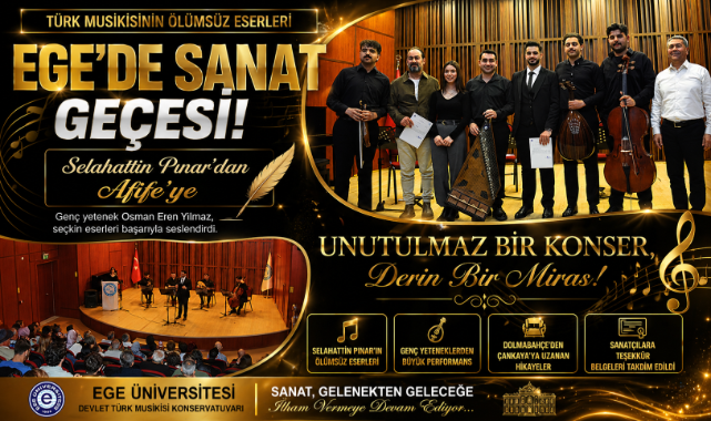 İzmir’de Ege Üniversitesi Devlet Türk Musikisi Konservatuvarı, Türk müziğinin unutulmaz isimlerini anan anlamlı bir konsere ev sahipliği yaptı. “Selahattin Pınar’dan Afife’ye” başlığıyla düzenlenen etkinlikte, genç solist Osman Eren Yılmaz, Neoklasik Türk Musikisi’nin seçkin eserlerini başarıyla seslendirdi.