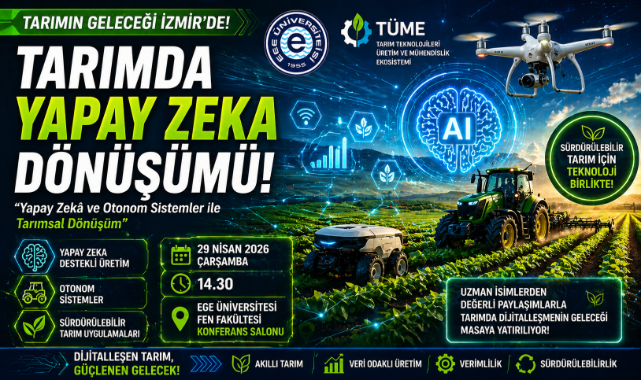 Ege Üniversitesi’nde düzenlenecek etkinlikte, yapay zeka ve otonom sistemlerin tarıma etkisi uzman isimlerle masaya yatırılacak.