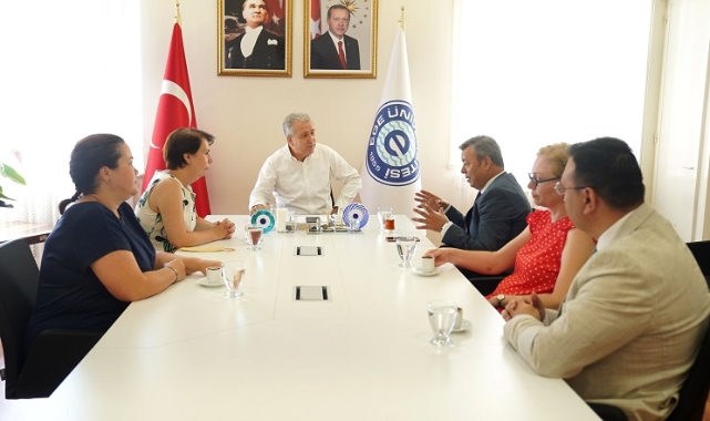 Ege Üniversitesi Ziraat Fakültesi ile Tarım ve Orman Bakanlığı İzmir İl Müdürlüğü ve Manisa Celal Bayar Üniversitesinden bilim insanları iş birliğinde hazırlanan “Tarımsal Amaçlı Kooperatiflerin Sürdürülebilirliğinin Ölçülmesine Yönelik Bir Algoritmanın Geliştirilmesi: İzmir İli Örneği” konulu proje TÜBİTAK tarafından desteklenmeye uygun bulundu. Bilim ekibini makamında kabul ederek tebrik eden Ege Üniversitesi Rektörü Prof. Dr. Necdet Budak, proje ile ilgili yapılacak çalışmalar hakkında bil