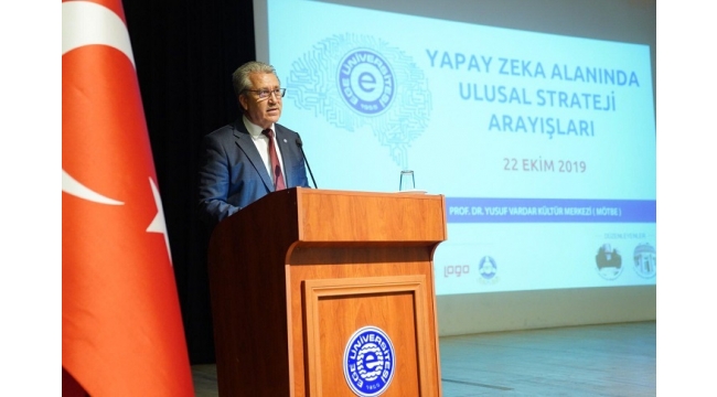 Ege Üniversitesi olarak çağdaş eğitim anlayışı doğrultusunda dijitalleşmeye büyük önem verdiklerini belirten Rektör Budak, “Üniversitemizde bugün gerçekleştirmekte olduğumuz etkinlikleri sağlıkta yapay zeka uygulamaları, tarımda yapay zeka uygulamaları gibi benzeri etkinliklerle sürdüreceğiz. Bu süreçte, dünyadaki gelişmelerin yakından takip edilmesi ve ilgili konuların tartışılması, ulusal stratejilerimizi belirlemede büyük rol oynayacaktır. Dolayısıyla bugün yapay zeka alanında deneyimli akademisyenleri, yöneticileri ve uzmanları bir araya getiren bir etkinliğe ev sahipliği yapıyor olmak bizler için büyük bir gurur kaynağı. Bu konferans, tüm katılımcılara, güncel gelişmeleri, beklentileri, sorunları ve çözüm yollarının tartışılacağı faydalı bir paylaşım platformu sunuyor. Bu anlamda, bu tür etkinlikler sayesinde kamu, özel sektör ve akademi arasında oluşturulacak işbirliğinin; Ülkemizi yapay zeka alanında daha ileri taşımak adına stratejik bir öneme sahip olduğuna inanıyorum” diye konuştu.