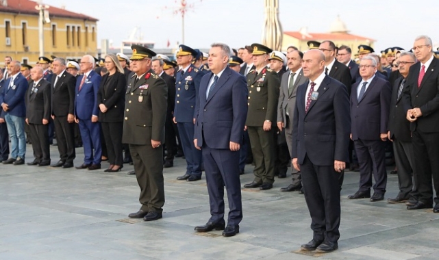 Saat 08.50'de Cumhuriyet Meydanı'nda düzenlenen anma töreninde Atatürk Anıtı'na çelenk sunuldu. Atatürk'ün hayata gözlerini yumduğu saat 09.05'te sirenlerin çalmasıyla saygı duruşuna geçildi. Çevre yollardaki sürücülerin araçlarından inmesi ve vatandaşların evlerinin balkonlarına çıkarak saygı duruşuna eşlik etmesiyle İzmir'de adeta hayat durdu. Saygı duruşu ve İstiklal Marşı'nın ardından göndere çekilen bayrak, yarıya indirildi.