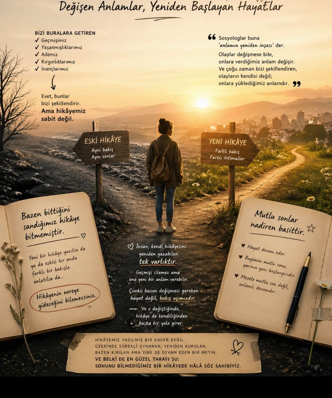 Kısacası… Hikâyemiz yazılmış bir kader değil. Üzerinde sürekli oynanan, yeniden kurulan, bazen kırılan ama yine de devam eden bir metin. Ve belki de en güzel tarafı şu: Sonunu bilmediğimiz bir hikâyede hâlâ söz sahibiyiz.
