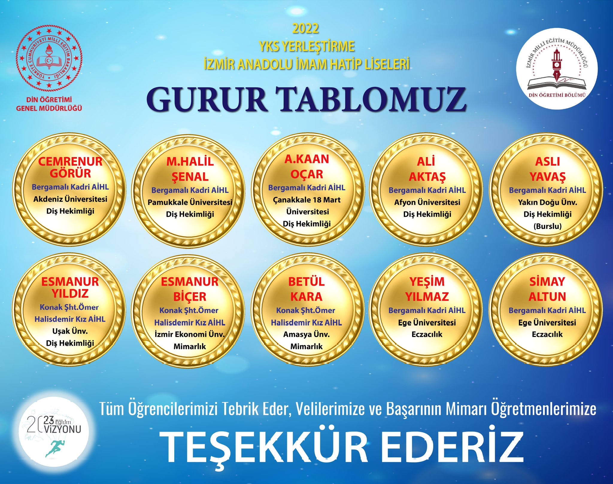 İzmir İmam Hatip Liselerinde öğrenim gören öğrenciler 2022 YSK’de Türkiye’nin gözde üniversitelerine ve bölümlerine yerleşme başarısı gösterdiler.